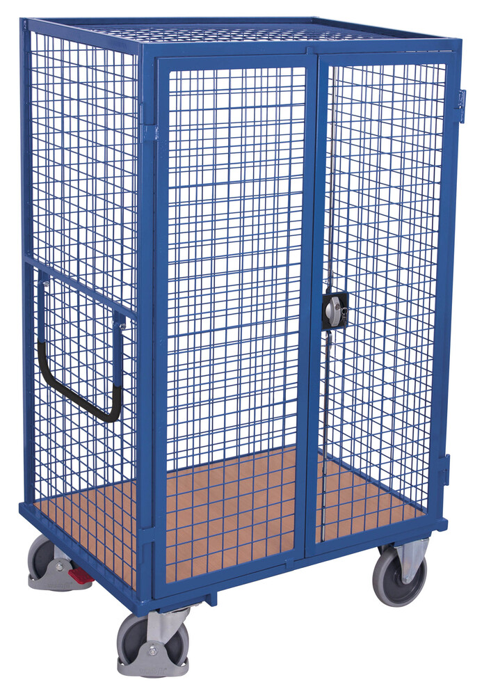 Construction en acier, entièrement soudée, avec porte battante avec 2 volets possèdent un verrouillage avec poignée tournante