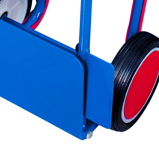 Luftbereifung auf Stahlfelge oder Vollgummibereifung auf Spezial-Kunststofffelge mit Präzisions-Rillenkugellager und Kunststoffradkappe.