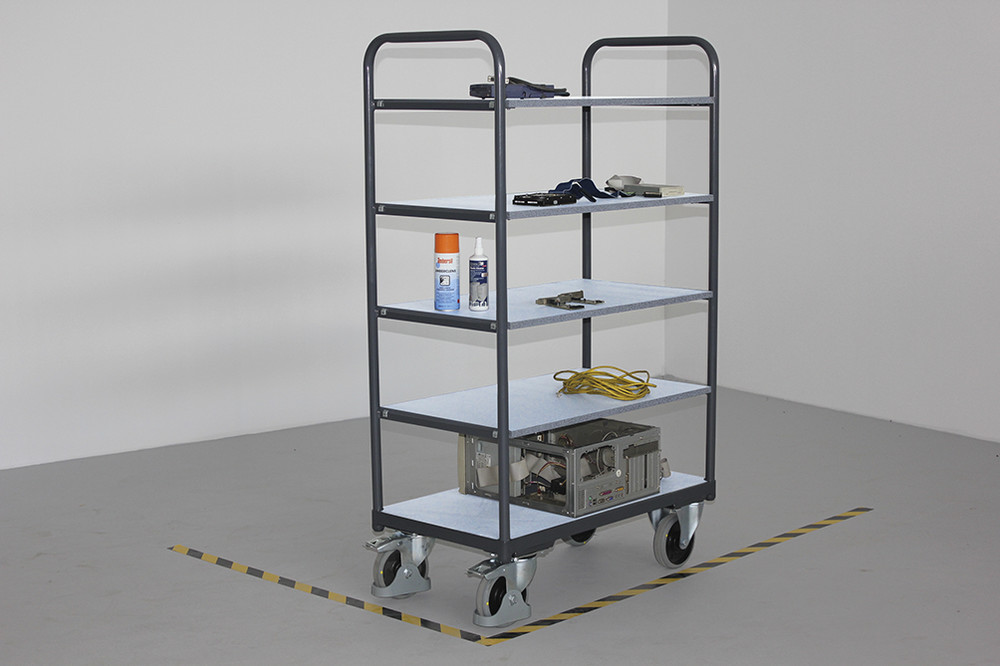 Grey non-marking electrically conductive thermoplastic rubber tyres on plastic wheel rim with precision deepgroove ball bearings