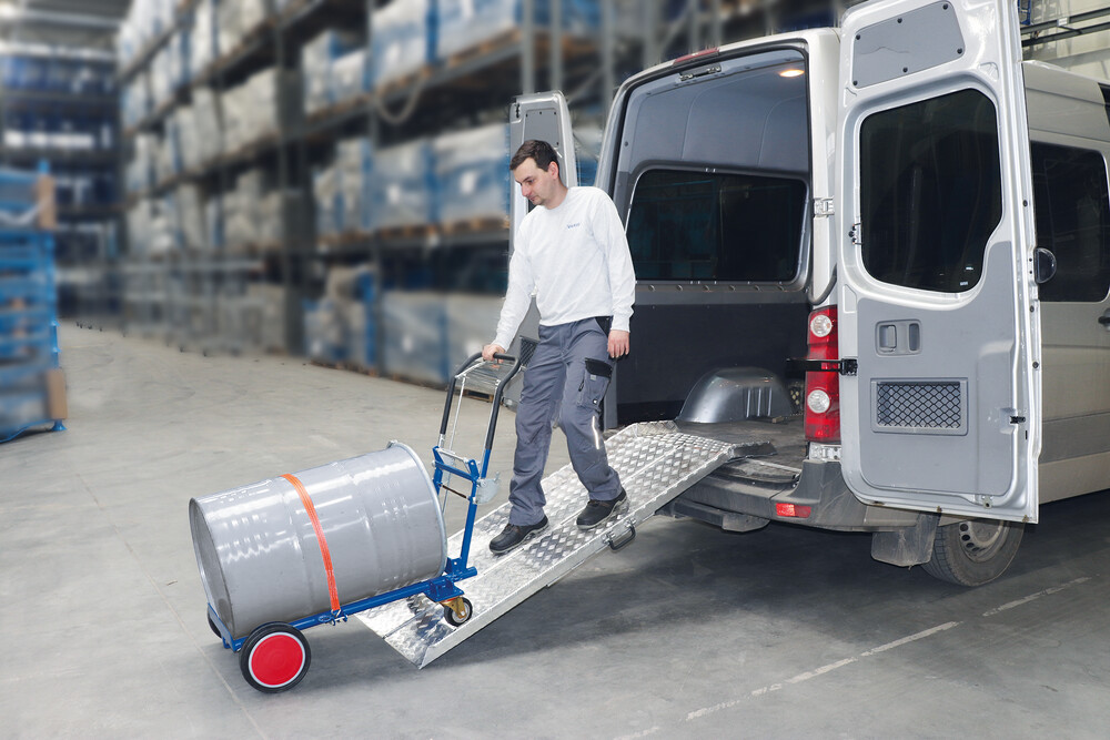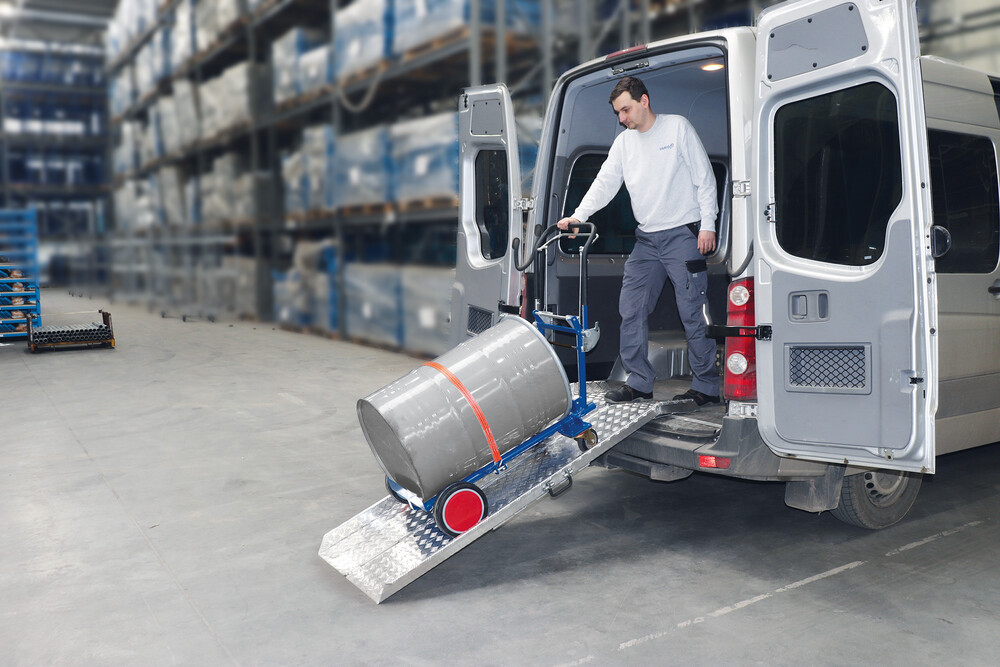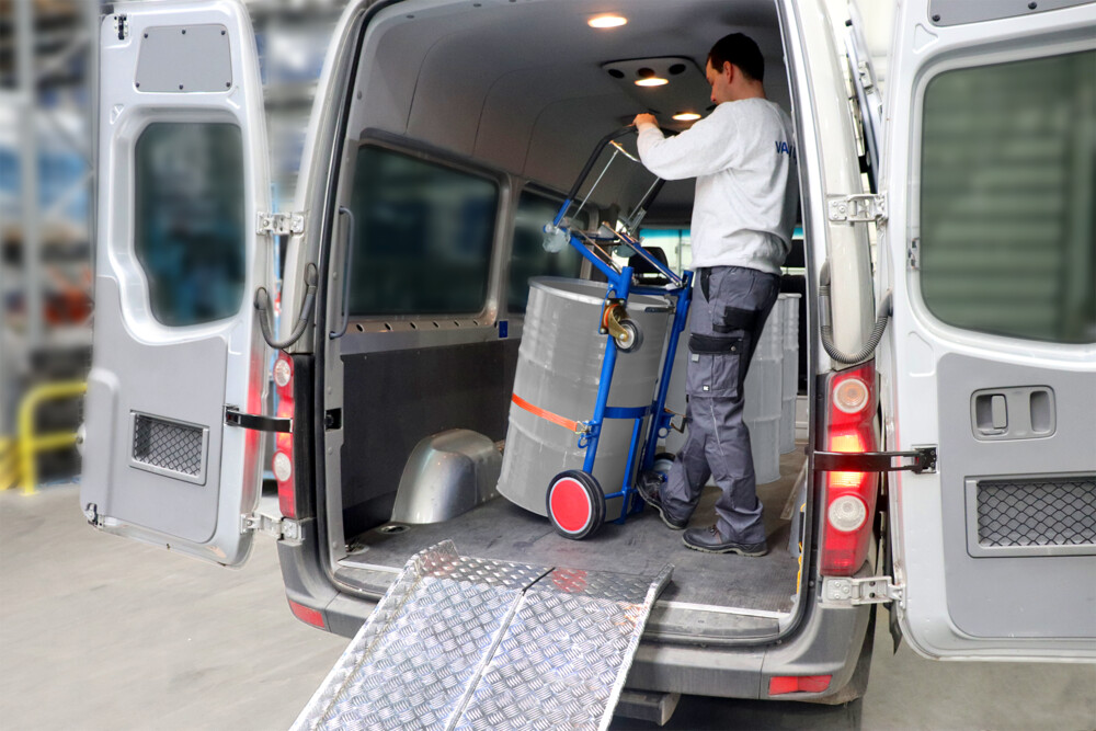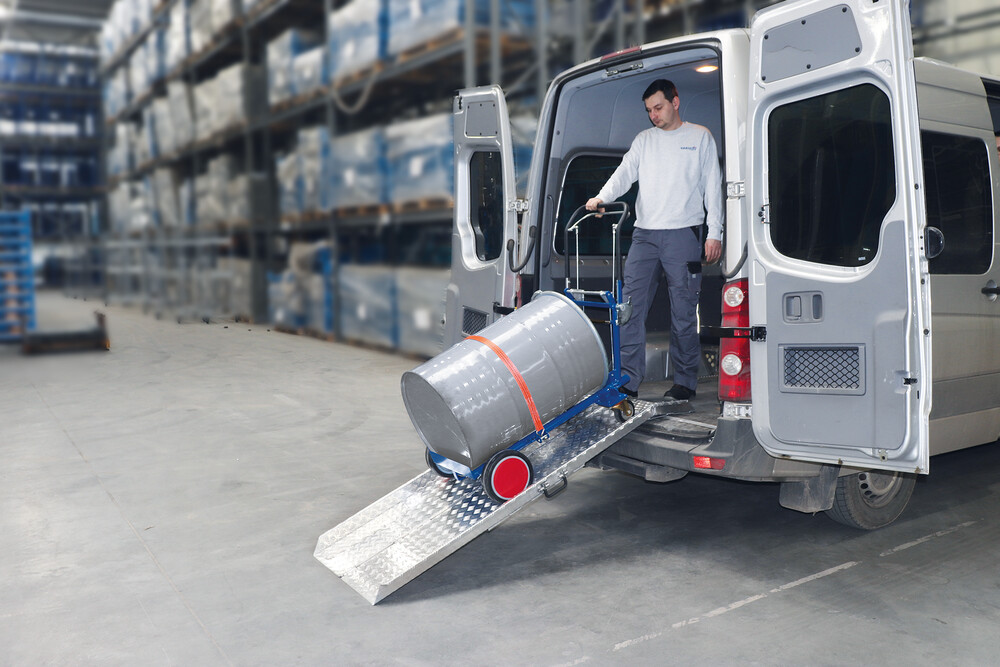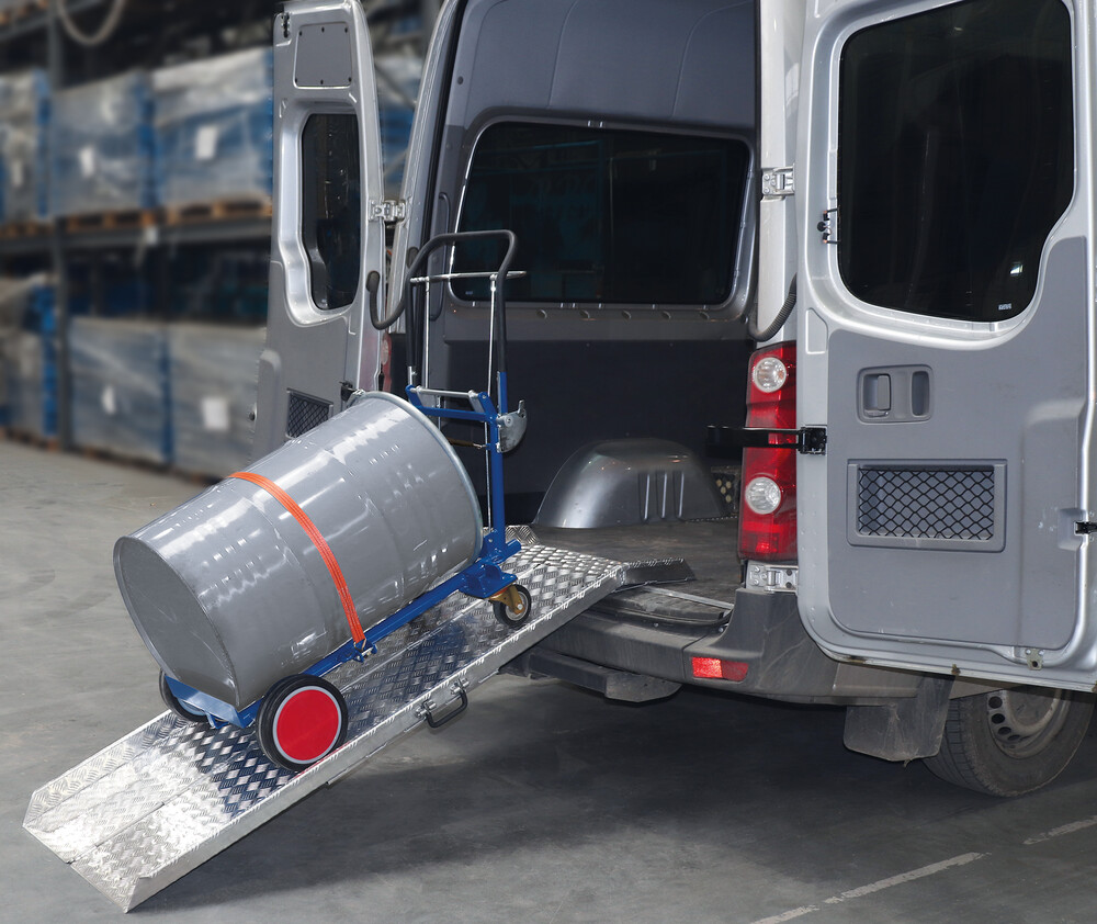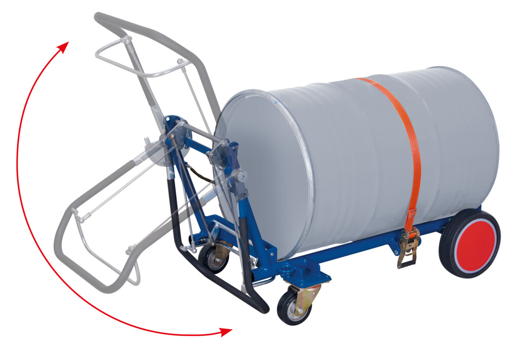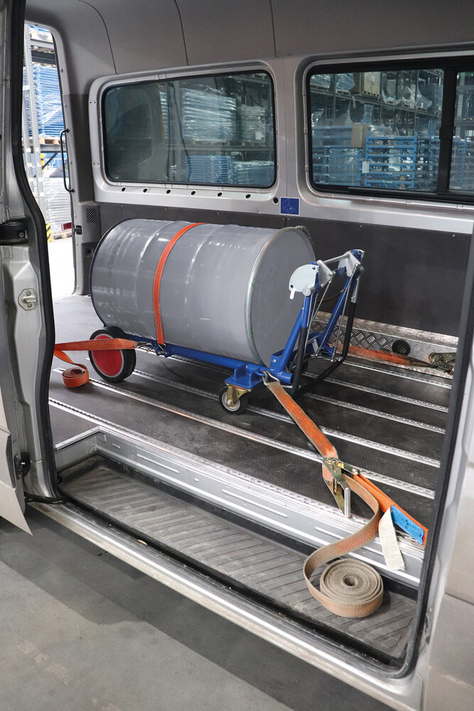 adapté au transport de fûts en tôle d'acier de 60 ou 200 litres avec bord