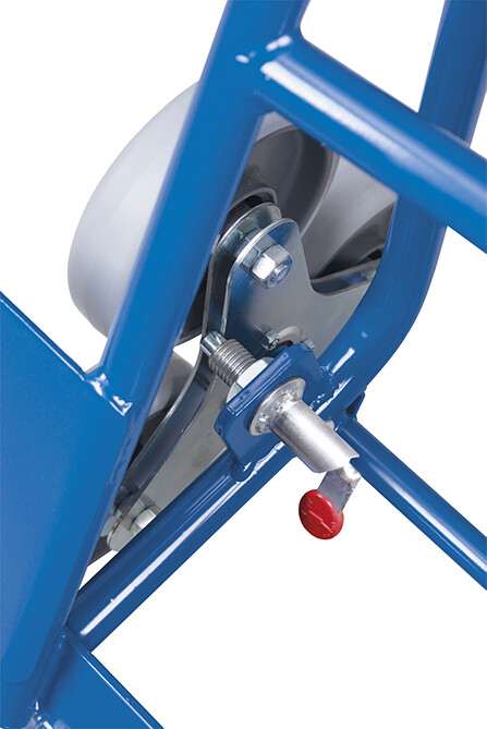 Stabilna, spawana konstrukcja 2 innowacyjne uchwyty ochronne łopata z blachy wysoka odporność na uszkodzenia mechaniczne 2 pięcioramienne gwiazdy z przykręcanymi kołami, bieżnik z szarej gumy termoplastycznej, niebrudzący, na feldze z tworzywa koła z precyzyjnym łożyskiem kulkowym, osłona przeciwwłokienna koła pneumatyczne, felga stalowa lub z pełnej gumy, felga specjalna plastikowa z precyzyjnym łożyskiem kulkowym i kołpakiem z tworzywa.